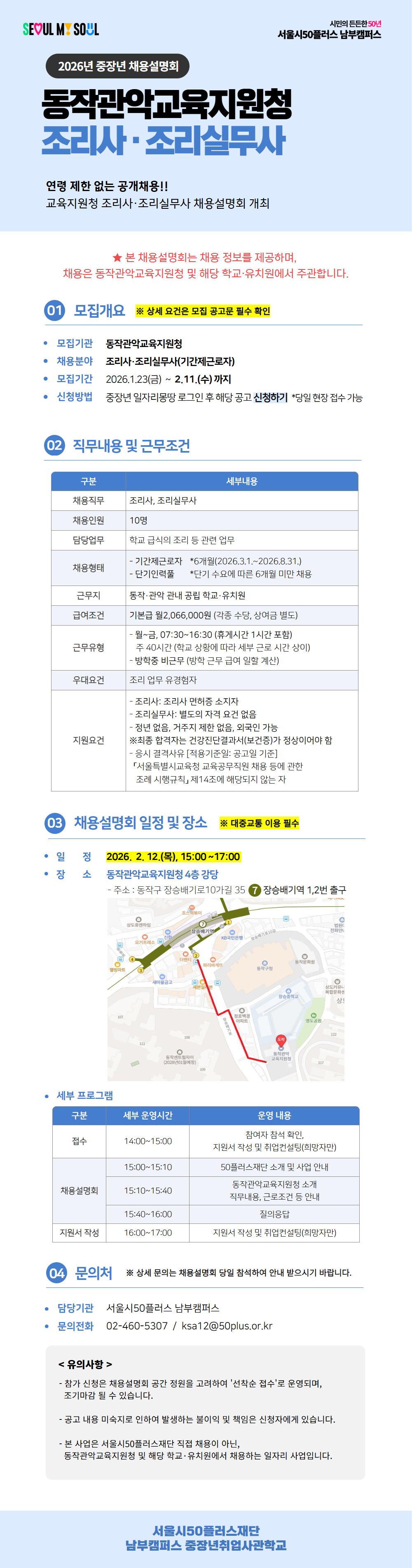 📢 ★공공분야★「동작관악교육지원청」중장년 채용설명회 참여자 모집