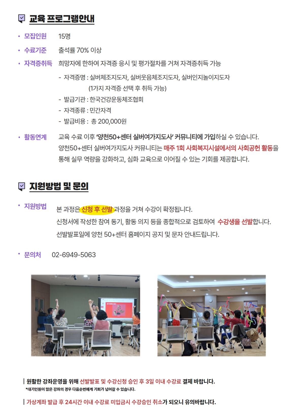 자격증 발급비(실버체조지도자, 실버웃음체조지도자, 실버인지놀이지도자 중 1가지) 별도