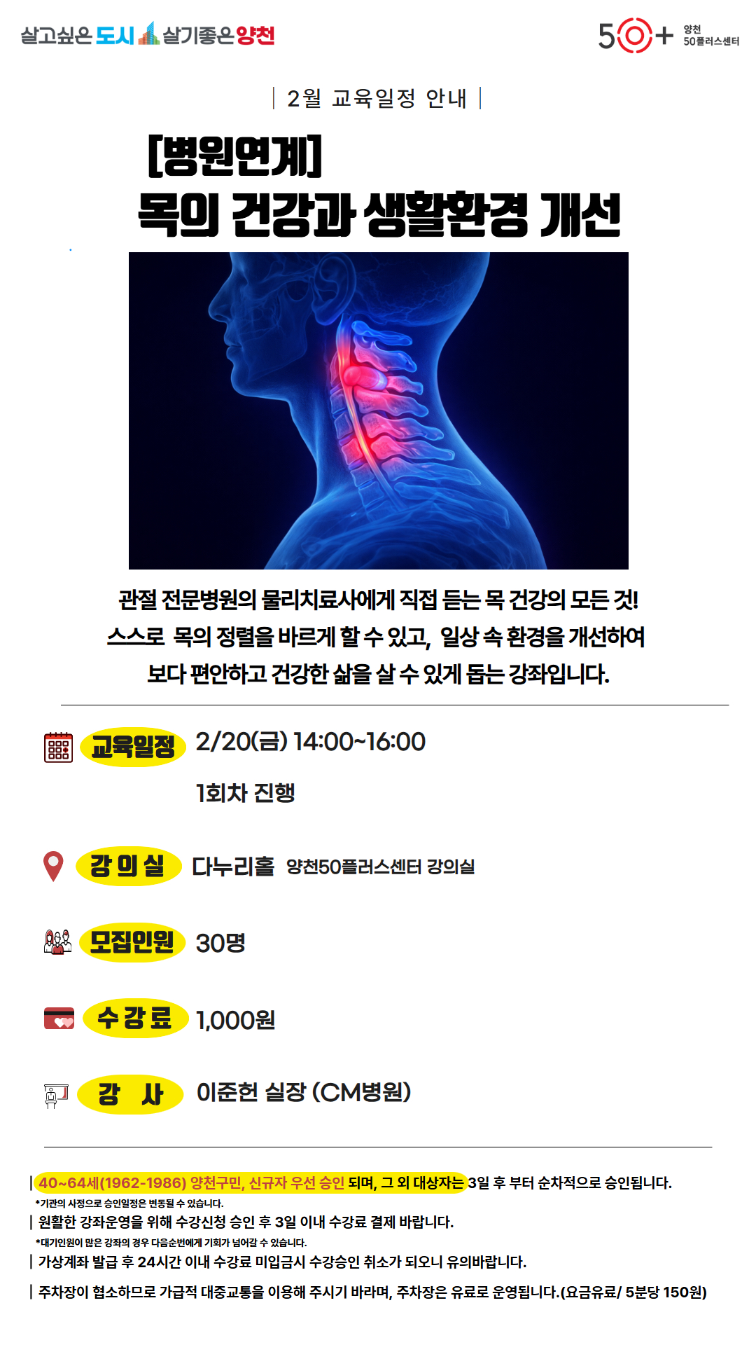 (1 회차) 2026.02.20(14:00 ~ 16:00) 다누리홀 CM병원 주제 : 목의 건강과 생활환경 개선