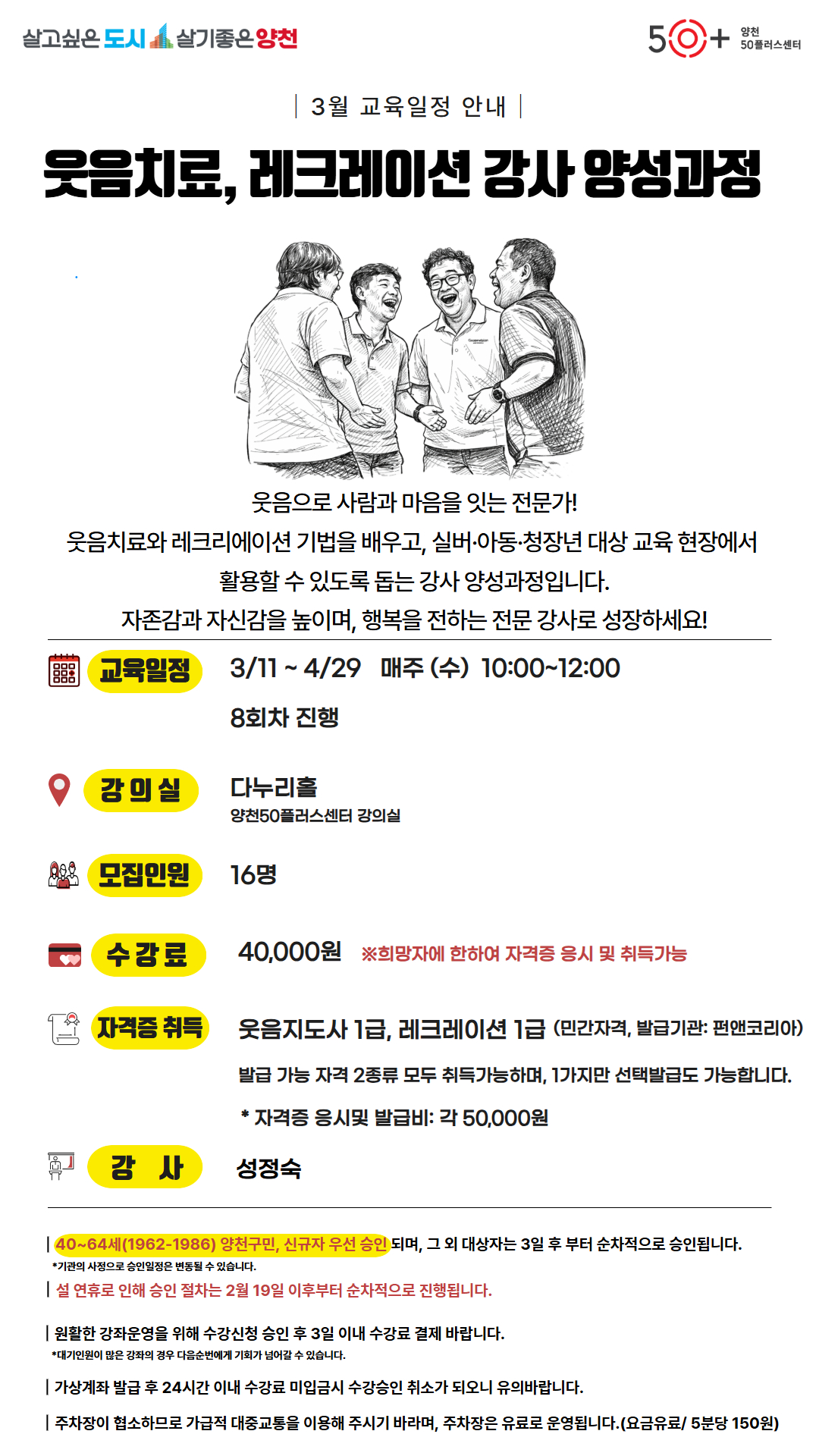 • - 양천구 양성펑등자격과정 웃음레크 강사양성과정