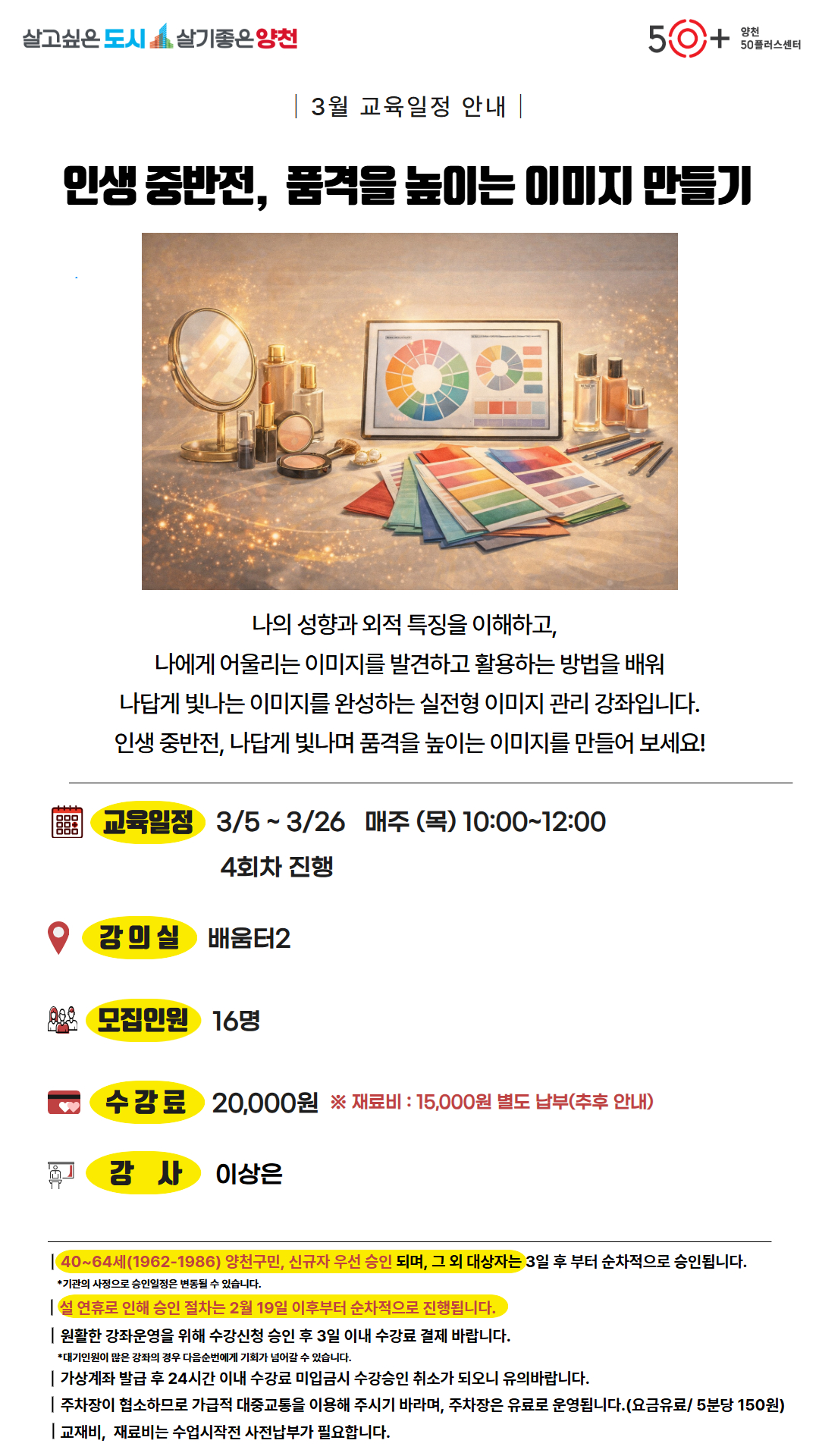 (1 회차) 2026.03.05(10:00 ~ 12:00) 배움터2 이상은 퍼스널 이미지메이킹 개론