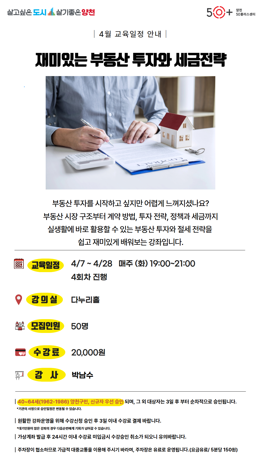 (4 회차) 2026.04.28(19:00 ~ 21:00) 다누리홀 박남수 주제 : 부동산 세금제도와 절세 방법