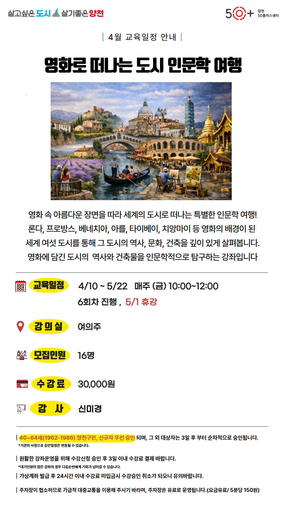 (2 회차) 2026.04.17(10:00 ~ 12:00) 여.의.주 신미경 주제 : 영화 <마농의 샘>과 프랑스 프로방스