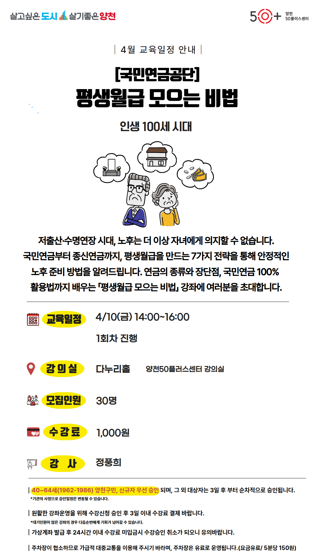 (1 회차) 2026.04.17(14:00 ~ 16:00) 다누리홀 정풍희 ○ 평생월급 및 노후준비의 필요성