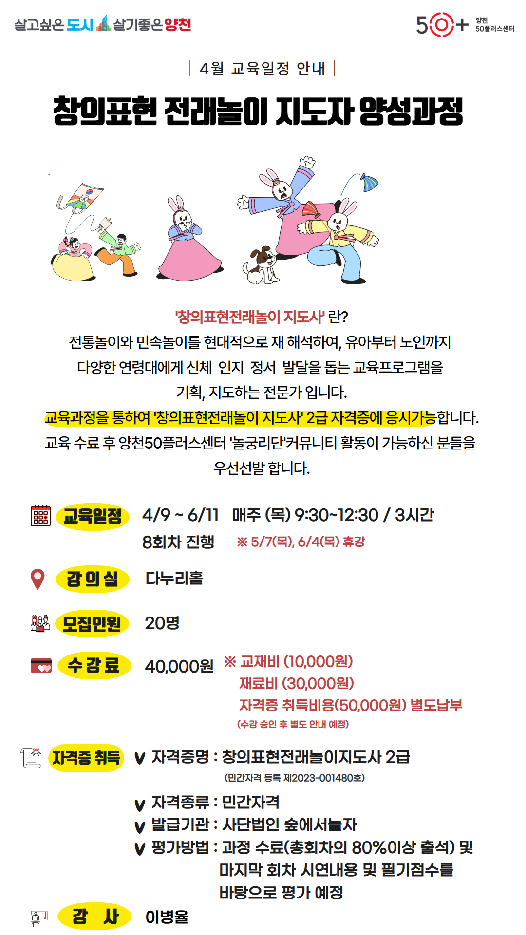 창의표현전래놀이 지도자 양성과정
