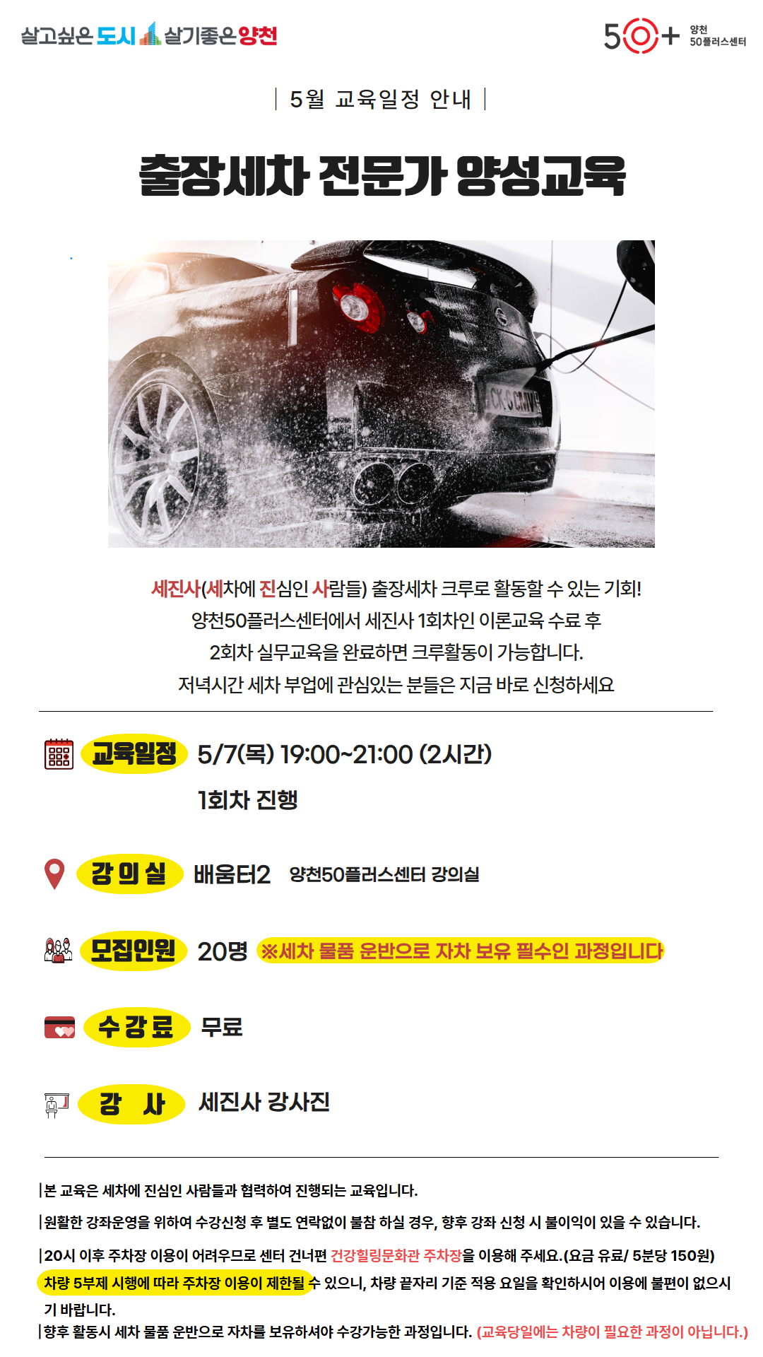 (1 회차) 2026.05.07(19:00 ~ 21:00) 배움터2 세진사 교육팀 출장세차 전문가 양성교육