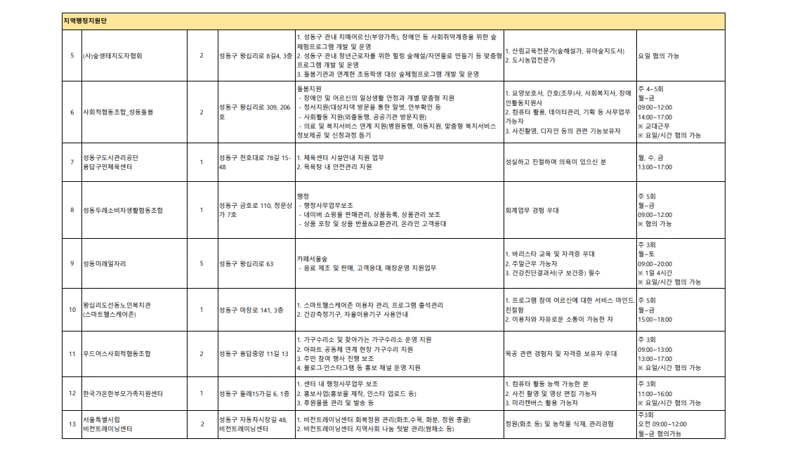 #성동구 # 가치동행일자리 # 지역돌봄학습단 # 지역행정지원단 # 중장년시설지원단