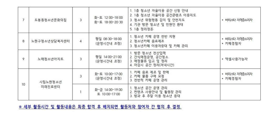 - 활동처별 우대 요건 확인