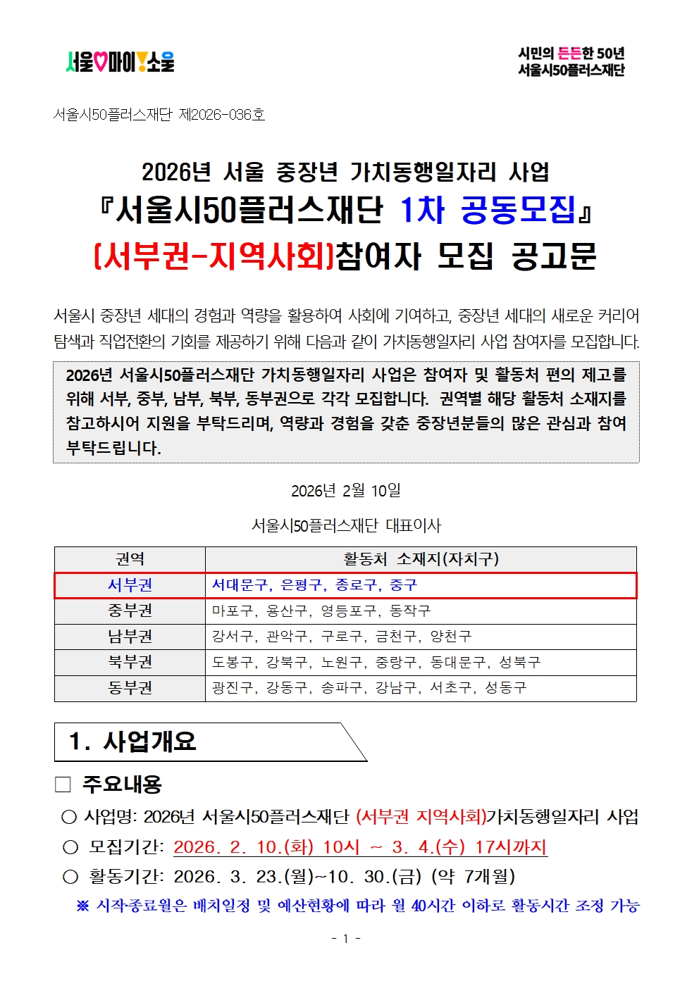 서울시50플러스재단 서부권 지역사회동행(1차 공동모집)