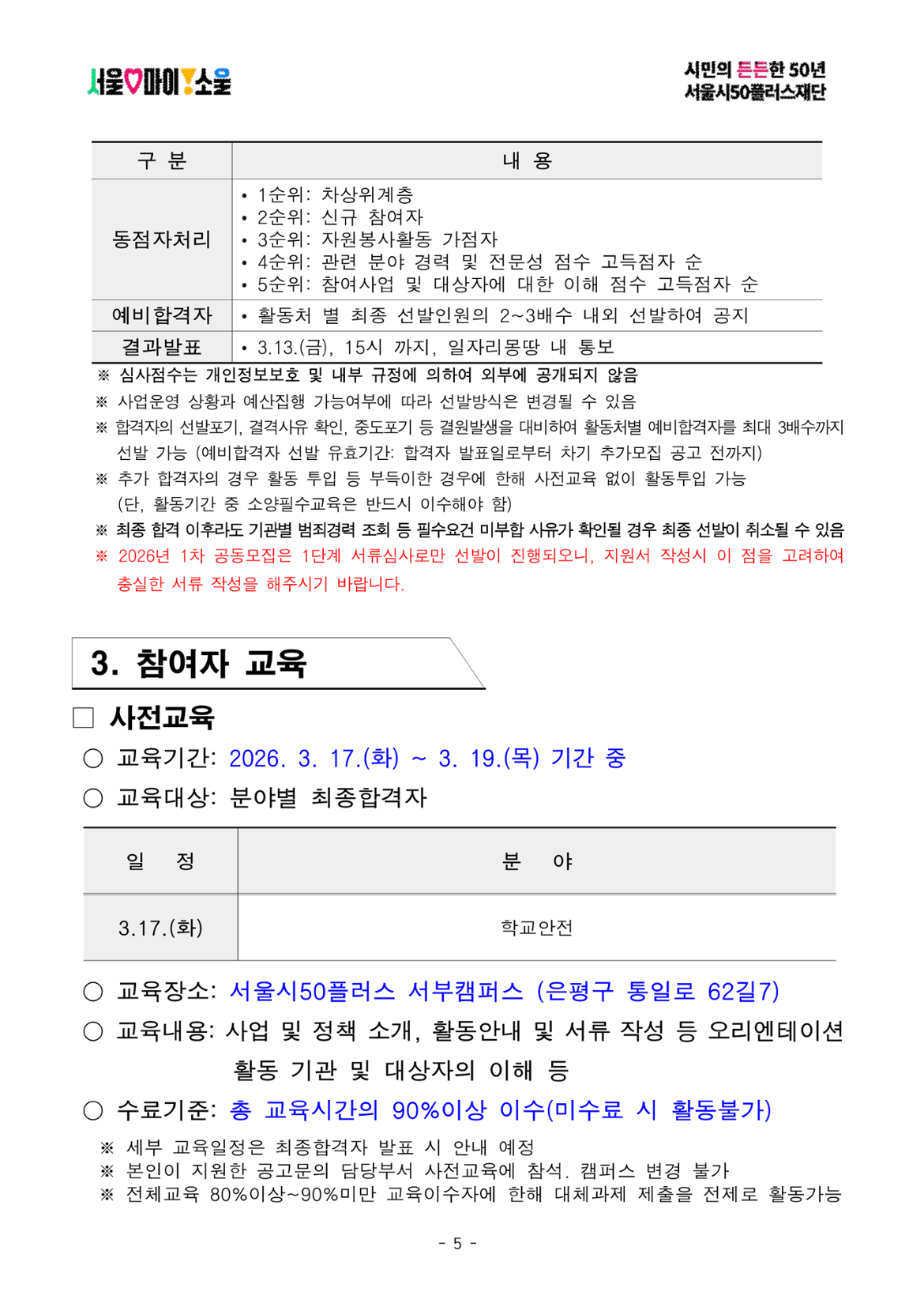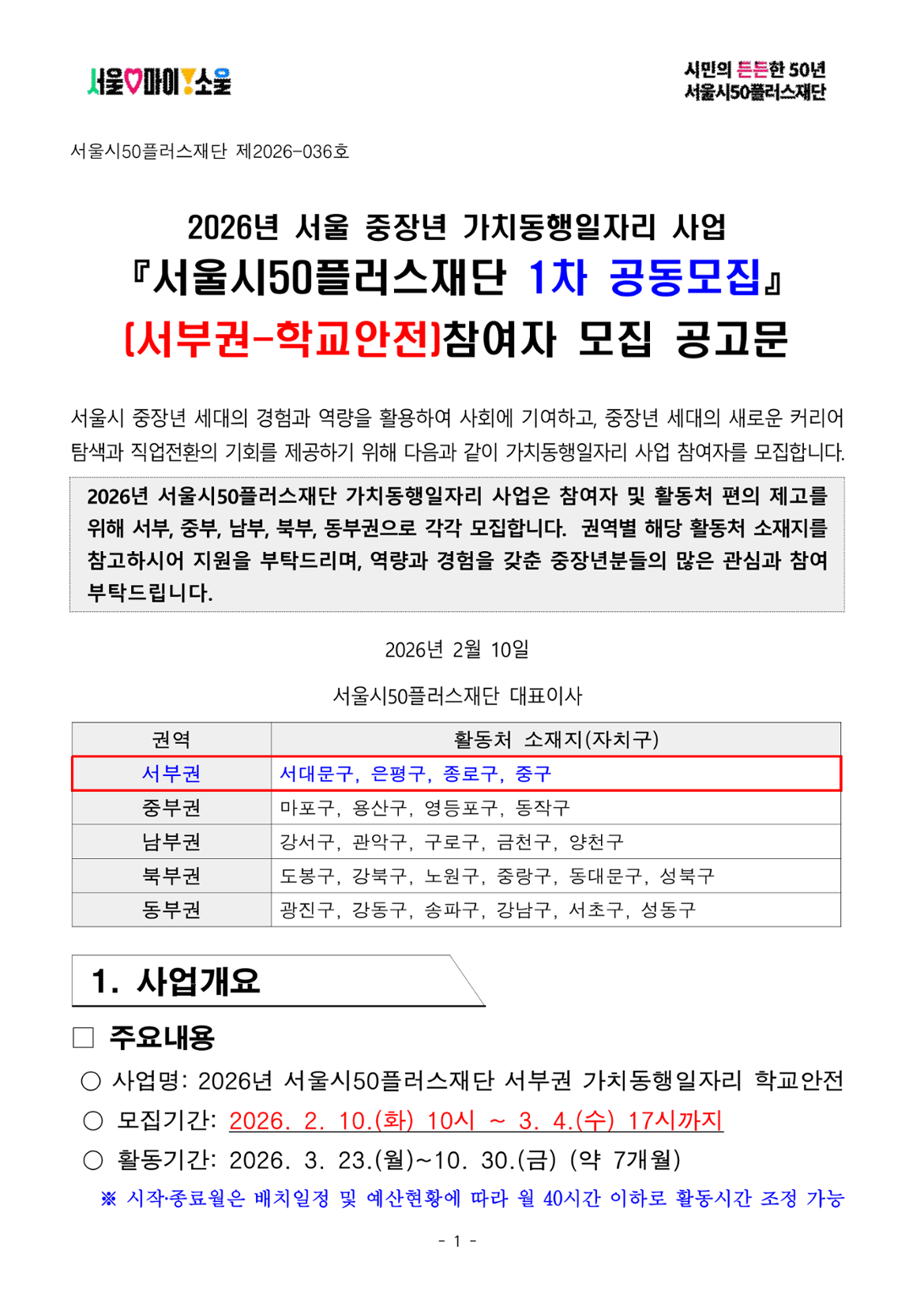 서울시50플러스재단 서부권 학교안전(1차 공동모집)