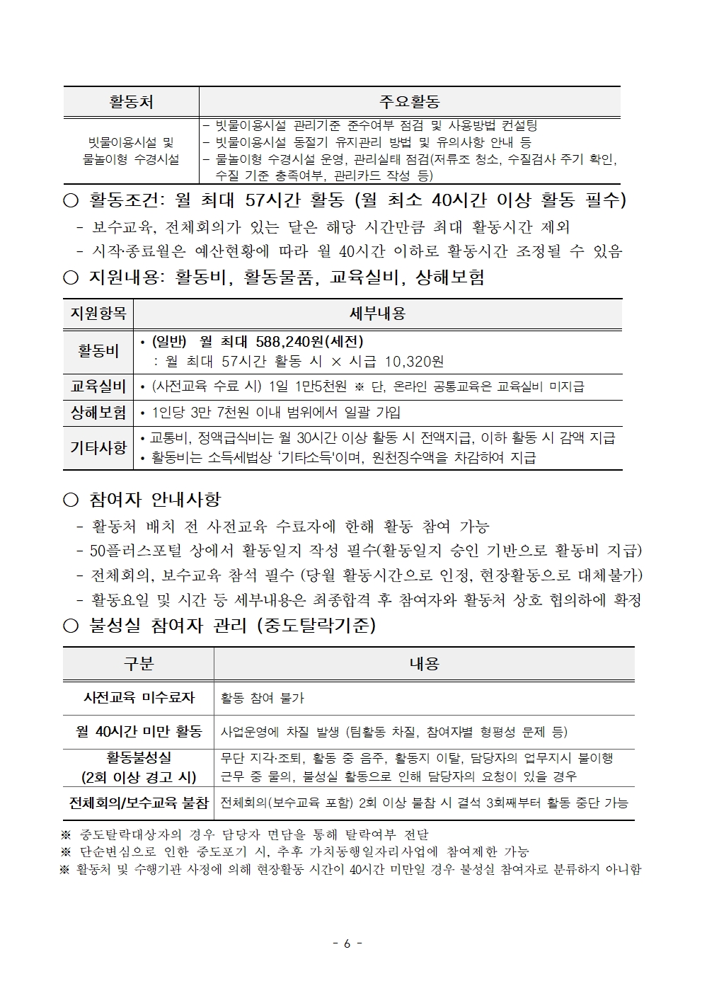 가치동행일자리 물순환시설관리지원단 1차 공동모집마감 D-21