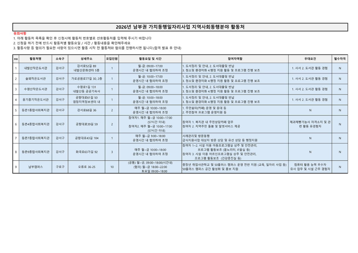 가치동행일자리 남부권 지역사회동행 1차 공동모집마감 D-21