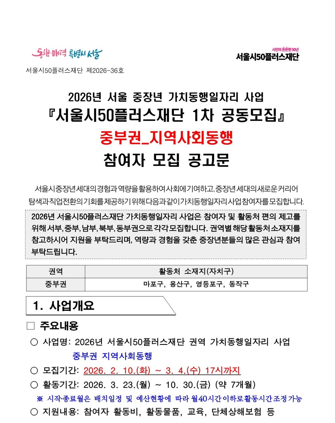 서울시50플러스재단 중부권 지역사회동행(1차 공동모집)