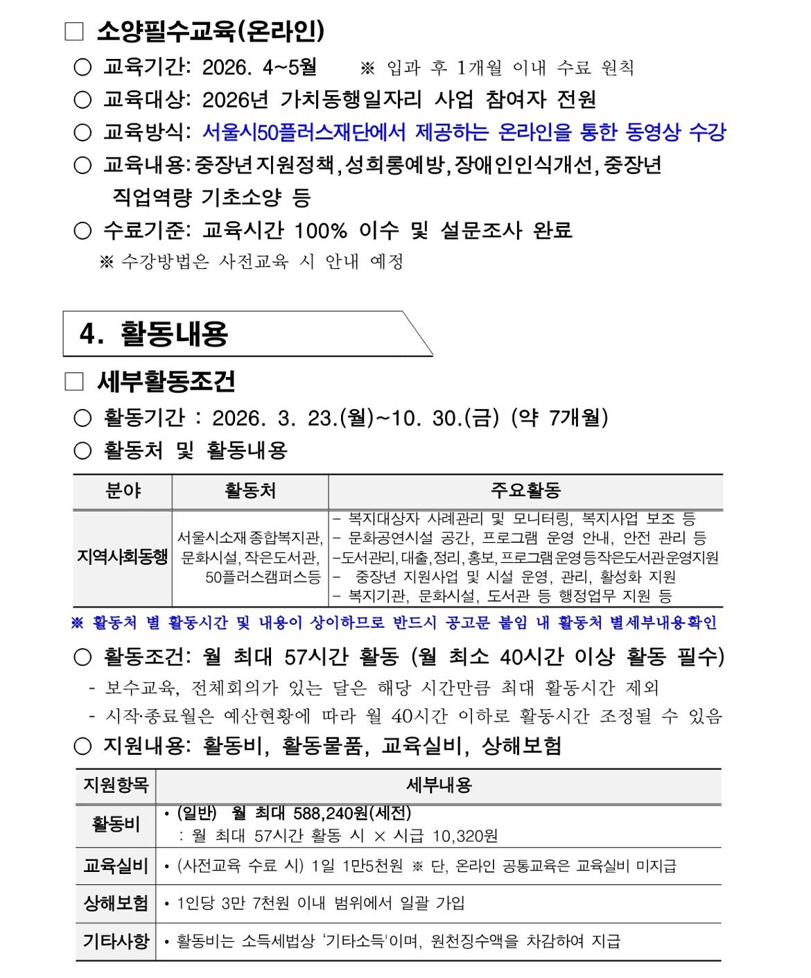 2026년 서울 중장년 가치동행일자리 사업 1차 공동모집 활동처