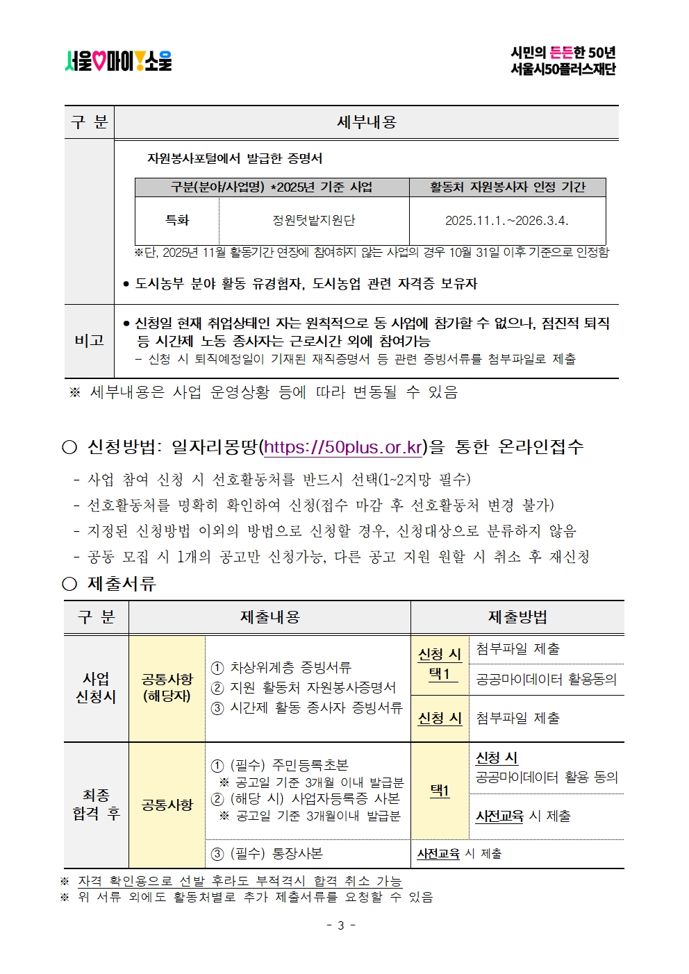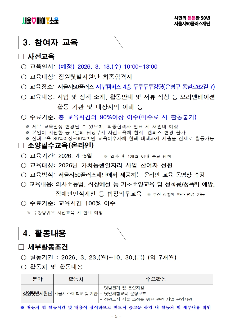 서울시50플러스재단 정원텃밭지원단(1차 공동모집)