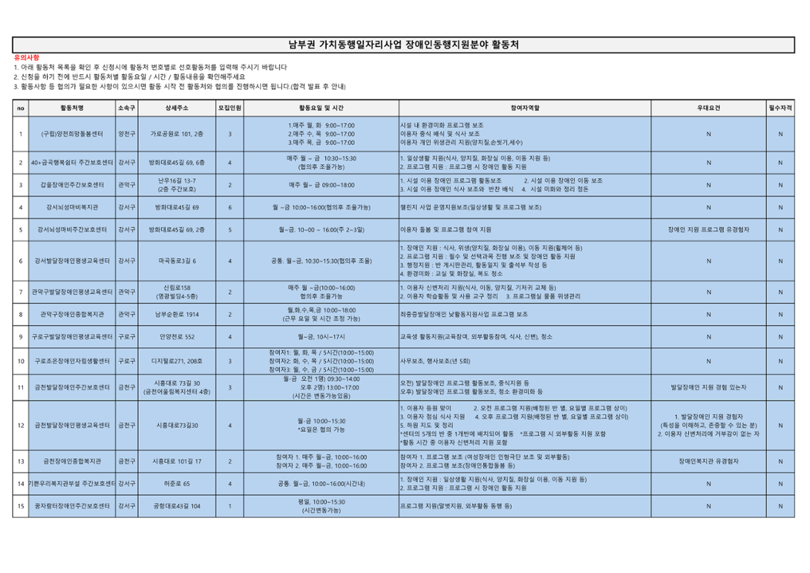 가치동행일자리 남부권 장애인동행 1차 공동모집마감 D-21