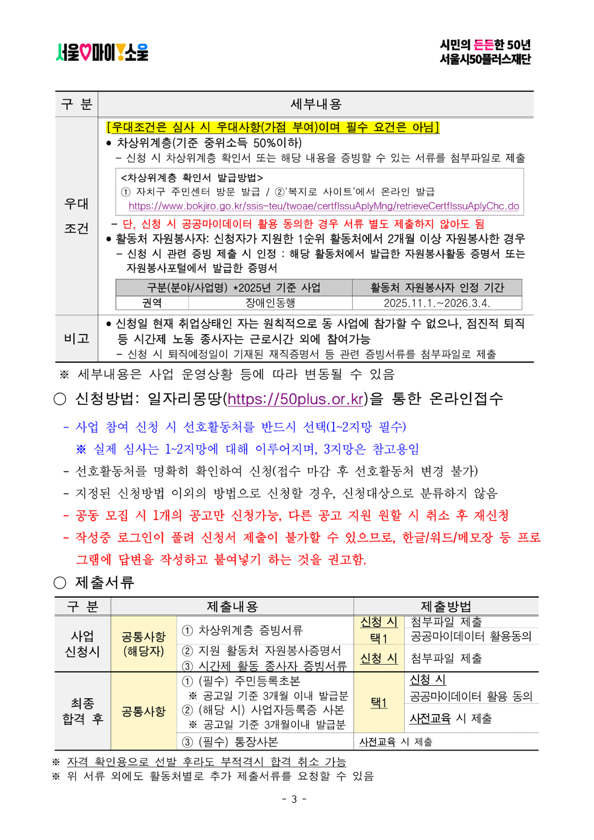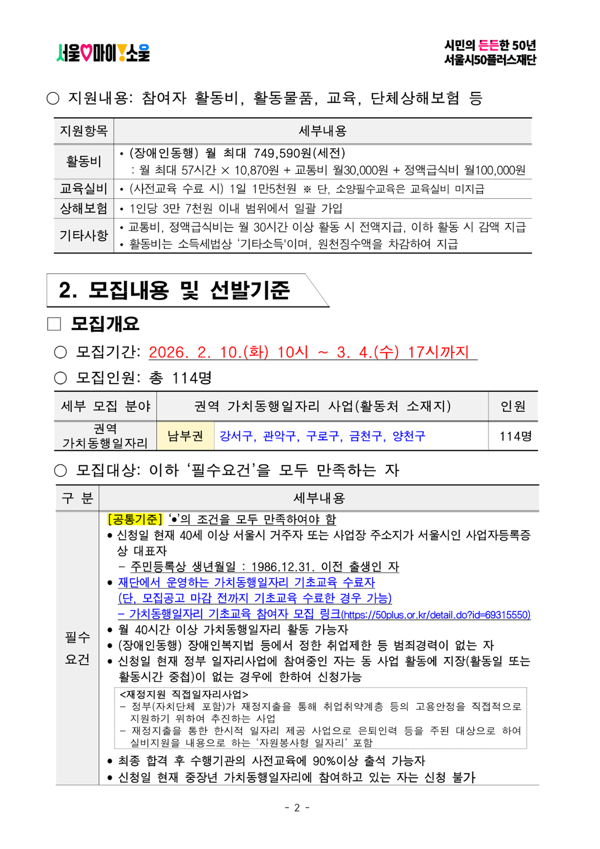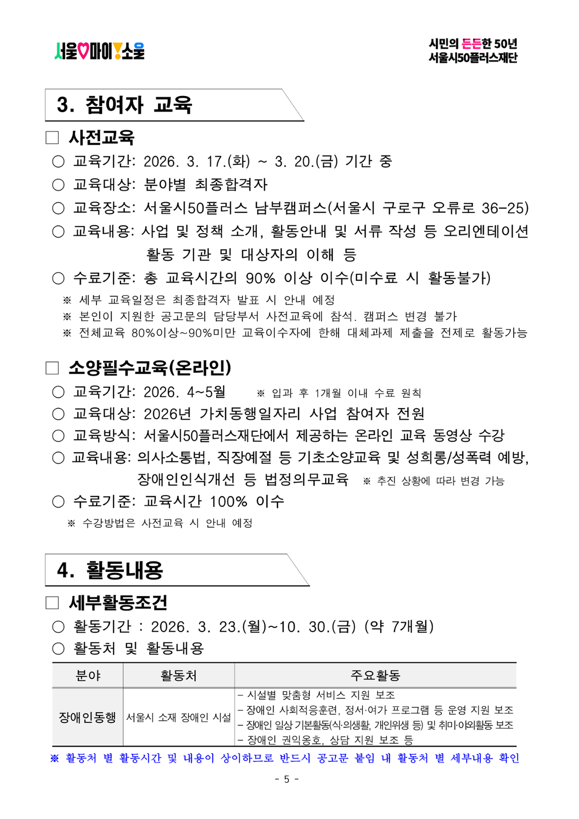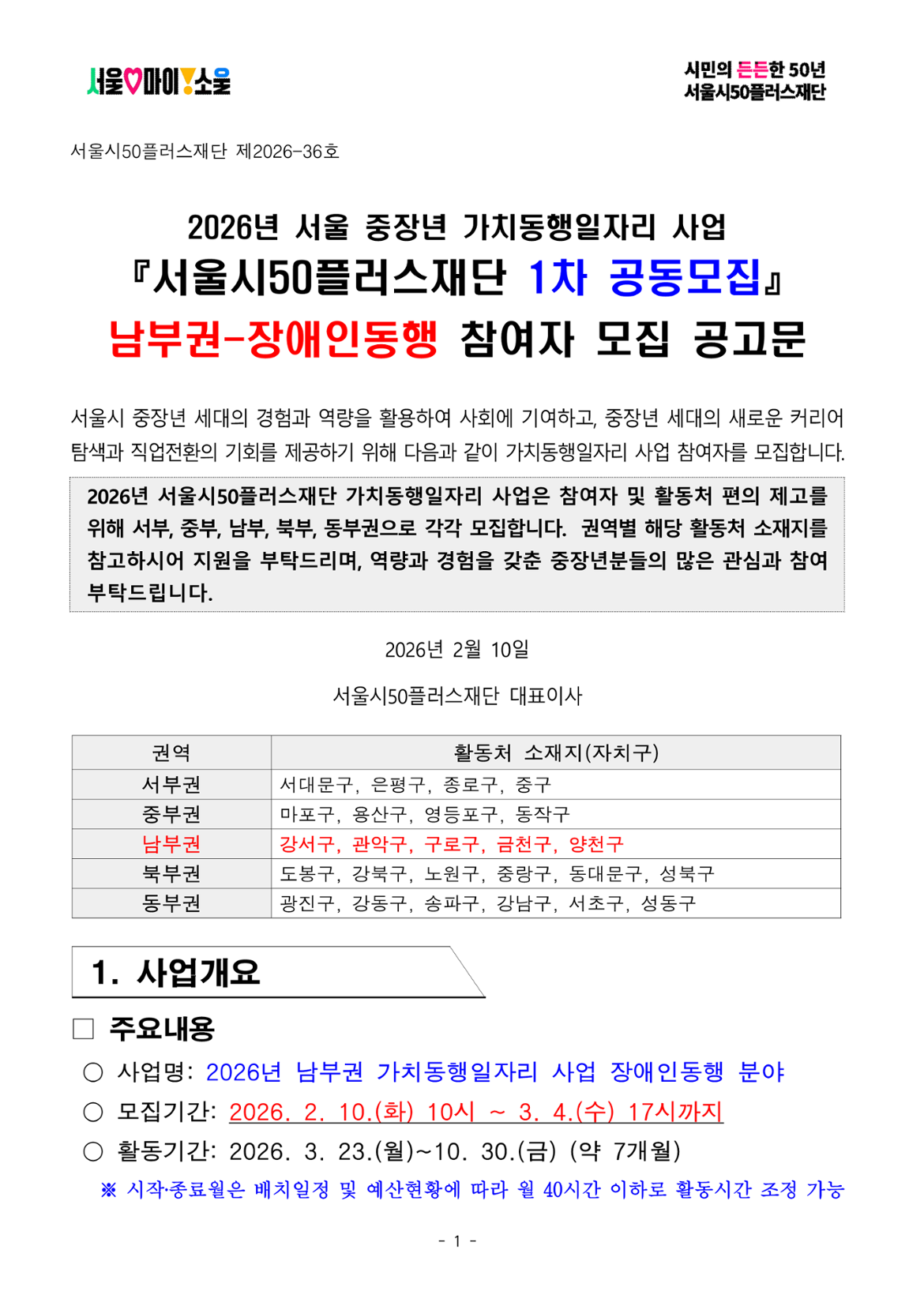 서울시50플러스재단 남부권 장애인동행(1차 공동모집)