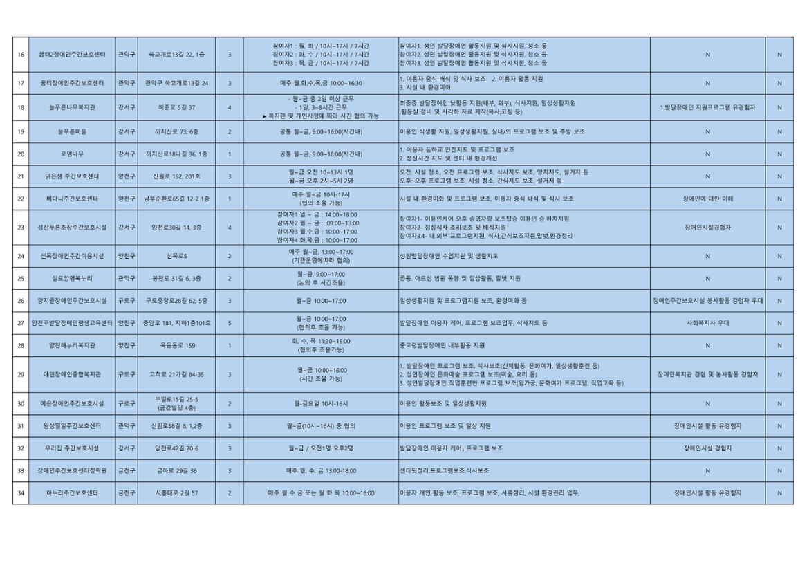 서울 남부권 소재 장애인자립시설 40곳