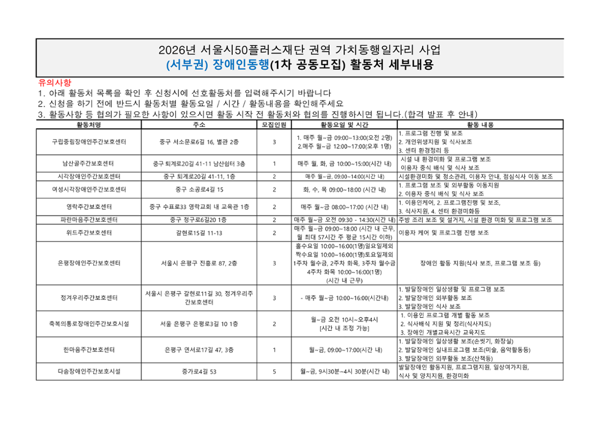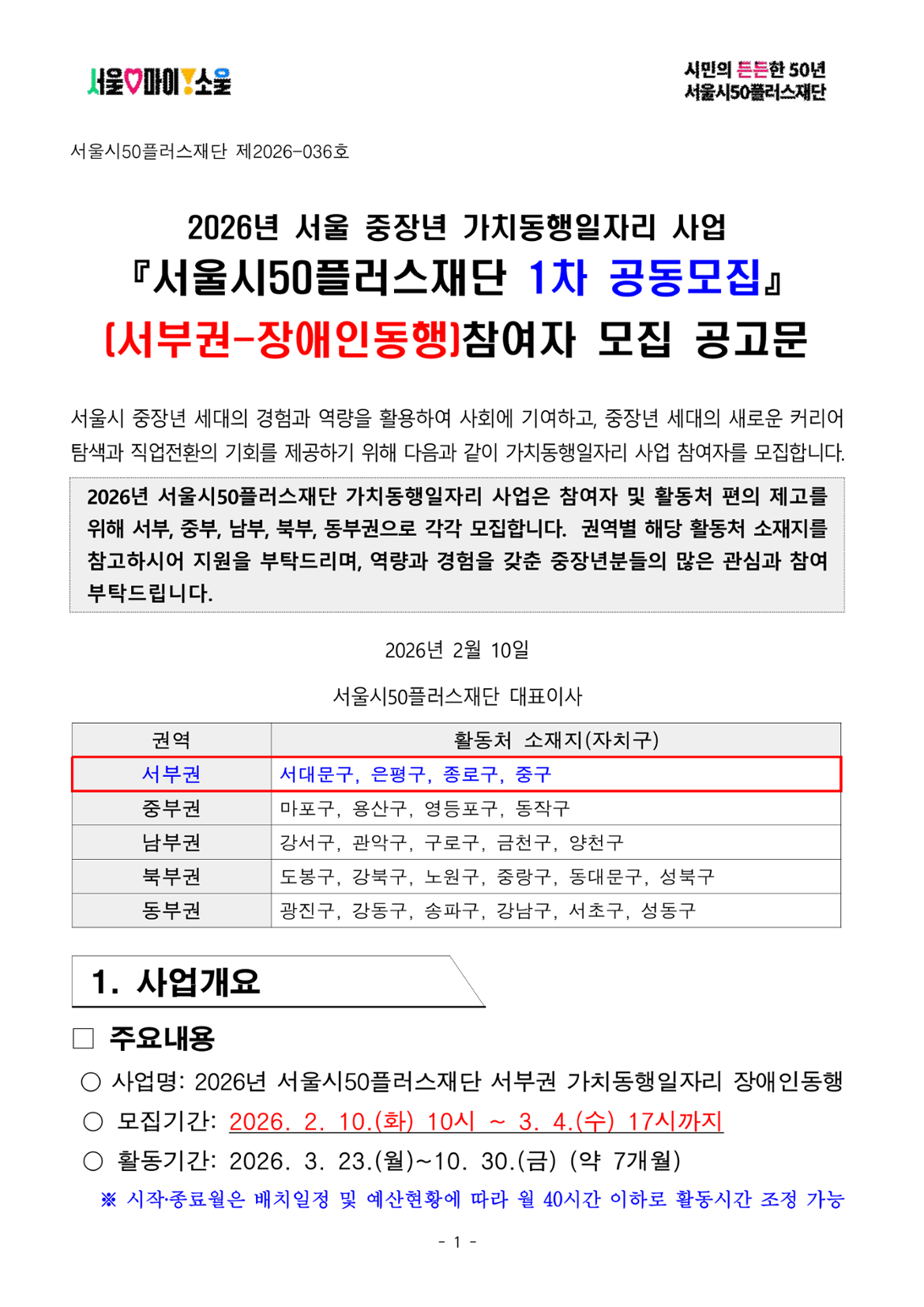 서울시50플러스재단 서부권 장애인동행(1차 공동모집)