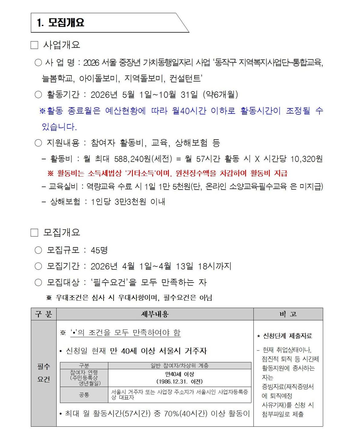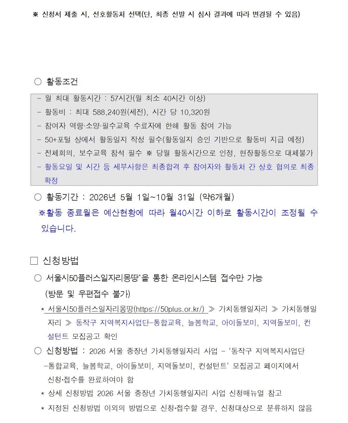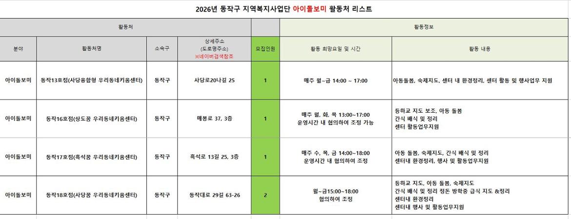 동작구 지역복지사업단 - 통합교육, 늘봄학교, 아이돌보미, 지역돌보미, 컨설턴트 참여자 1차 추가모집공고마감 D-12