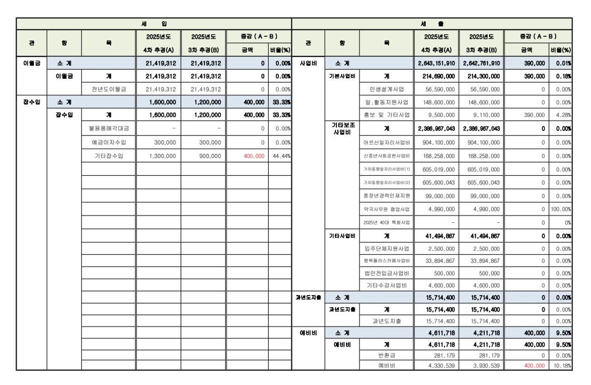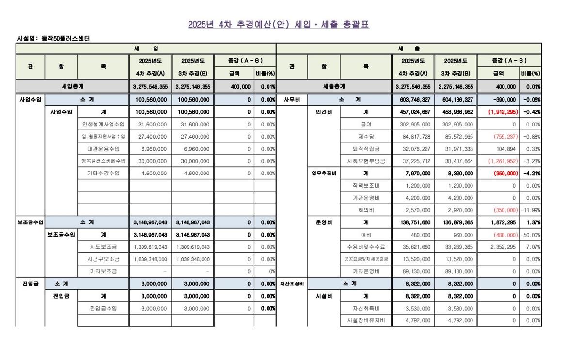 서울시 동작센터 | 2025년 동작50플러스센터 4차 추경예산 공시