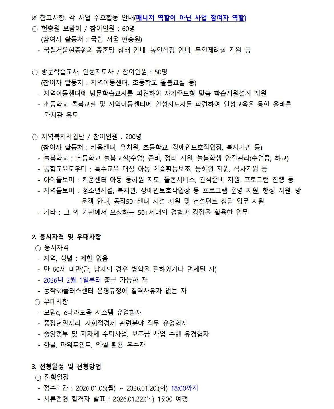 동작50플러스센터, 모집공고, 서울시 보람일자리