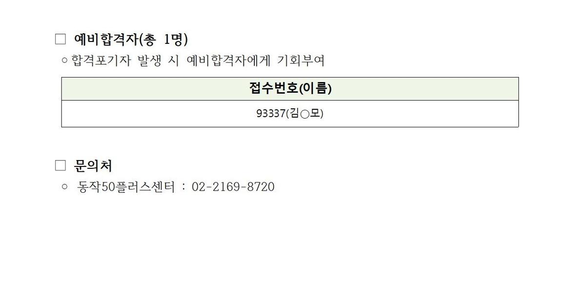 동작50플러스센터, 서울시 보람일자리, 합격자공고