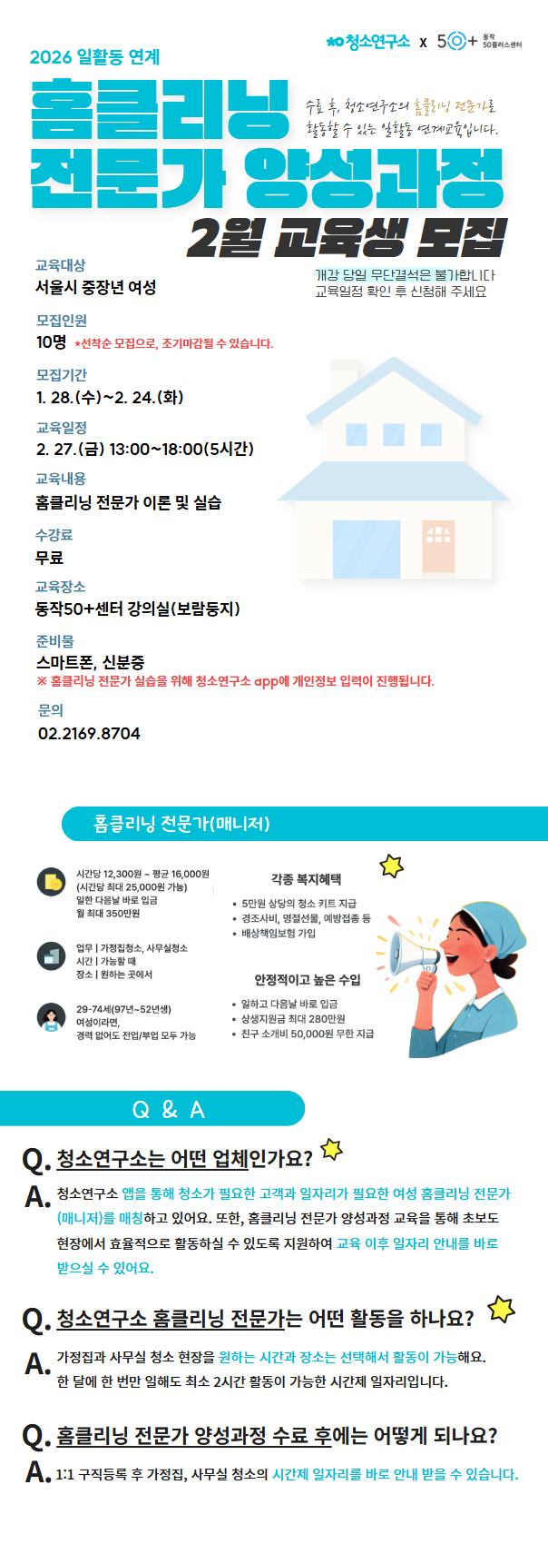 ※ 본 교육은 청소연구소와 함께 협력하여 진행되는 교육입니다. (모집기간: 2월 24일 23:59 까지)