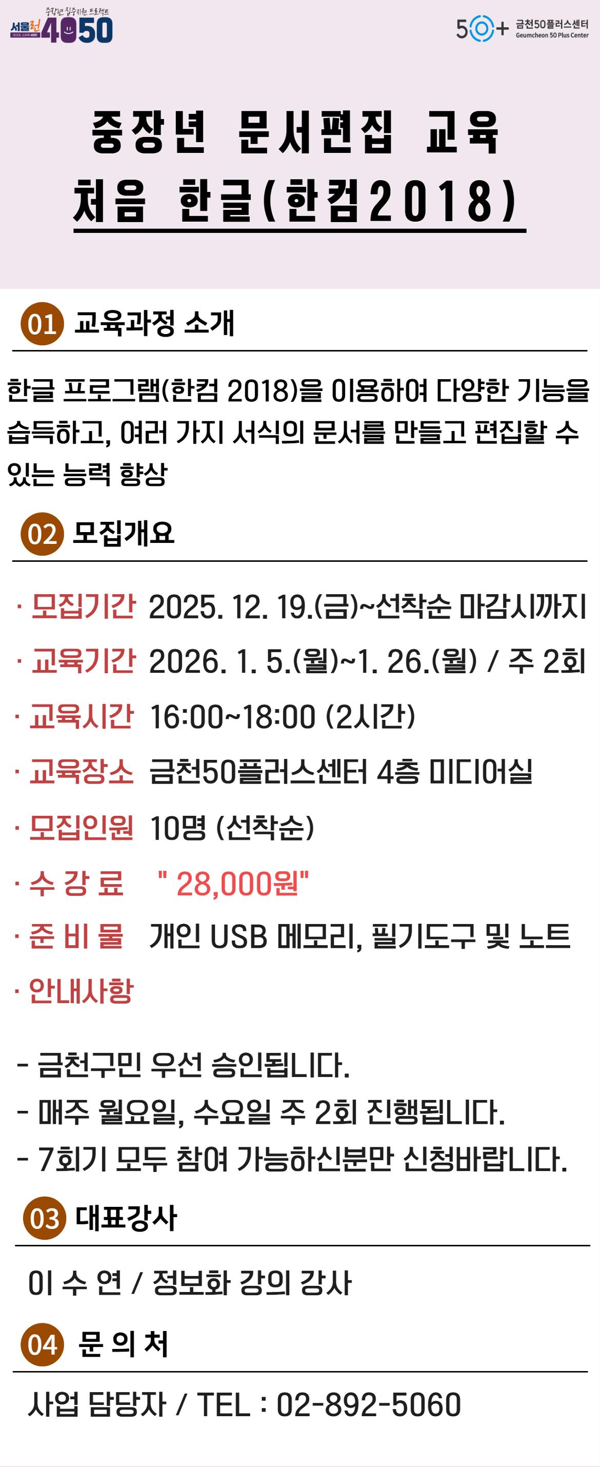 문의 연락처 사업 담당자(02-892-5060)