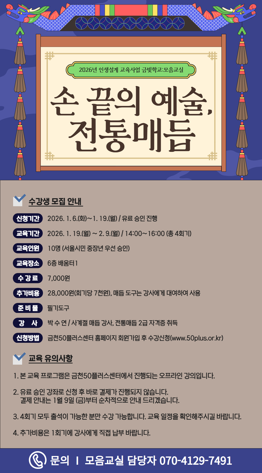 [금천][모음교실] 손 끝의 예술, 전통매듭마감 D-4