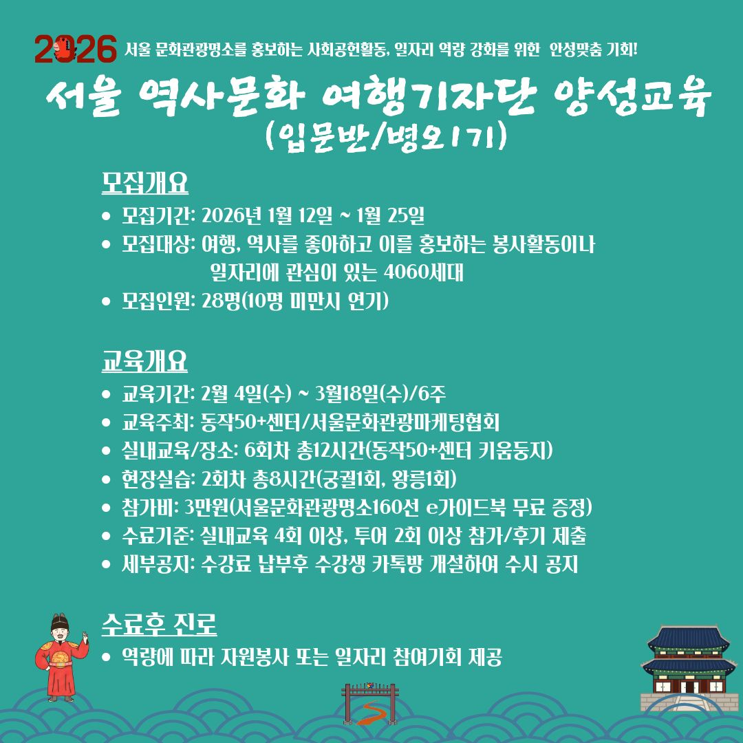 [동작]서울 역사문화 여행기자단 양성교육(입문반/병오1기)마감 D-12