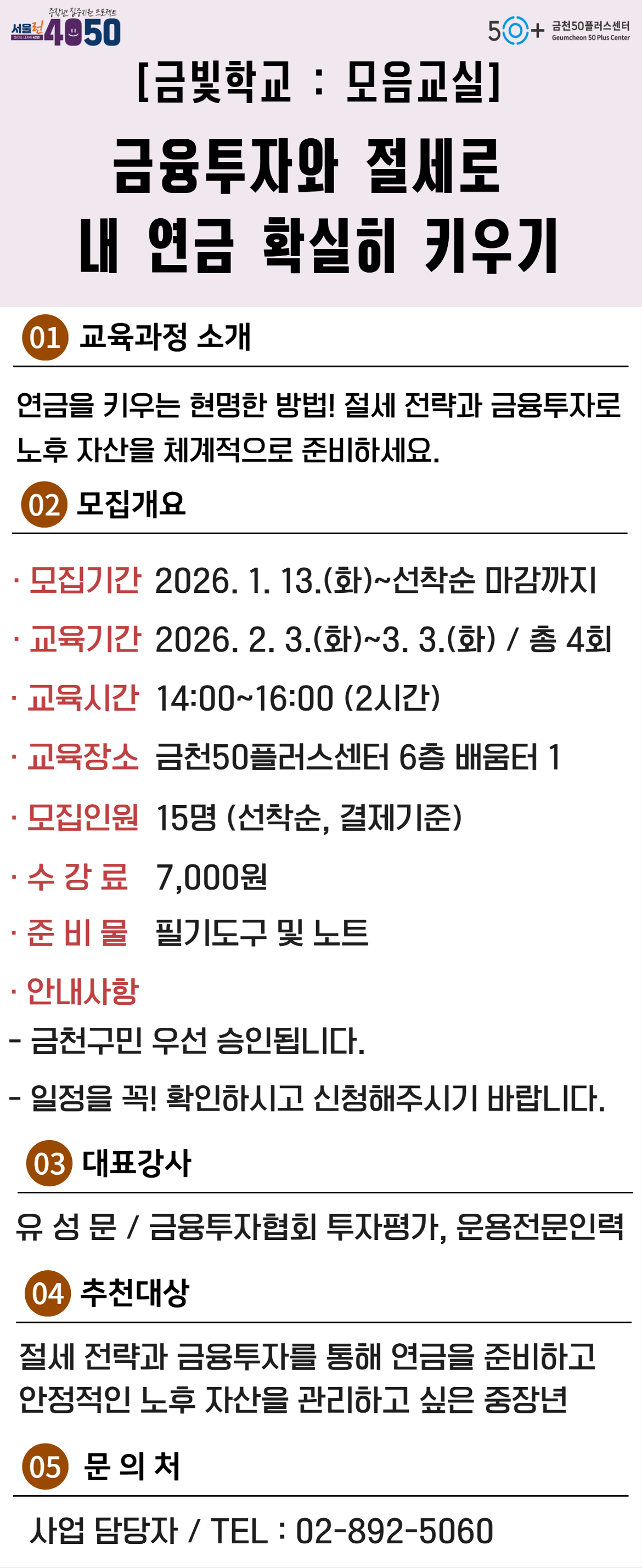 [금천][모음교실] 금융투자와 절세로 내 연금 확실히 키우기 마감 D-20