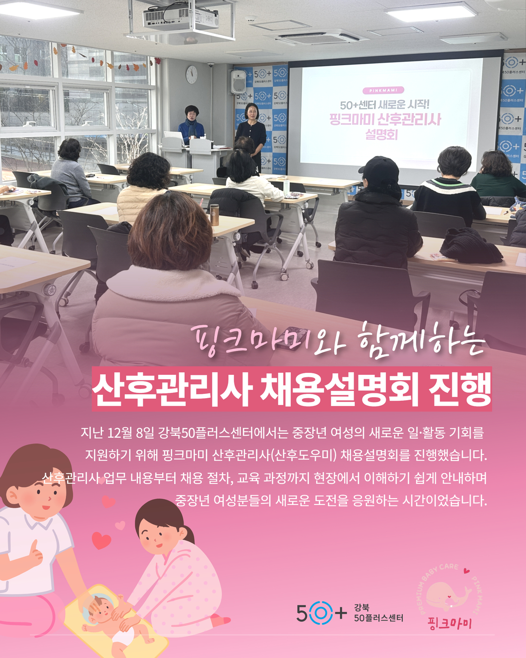 핑크마미 산후관리사 채용설명회를 잘 마무리 하였고 강북50플러스센터는