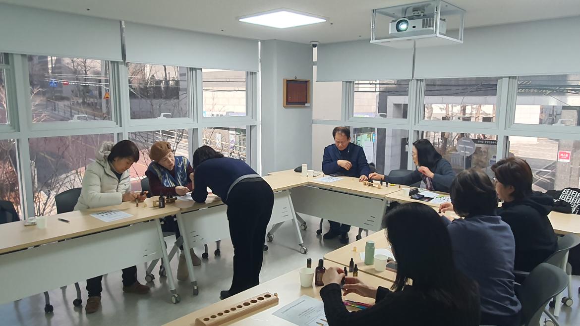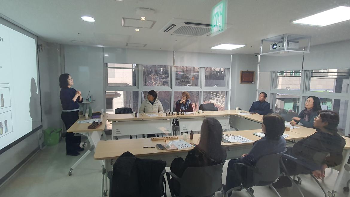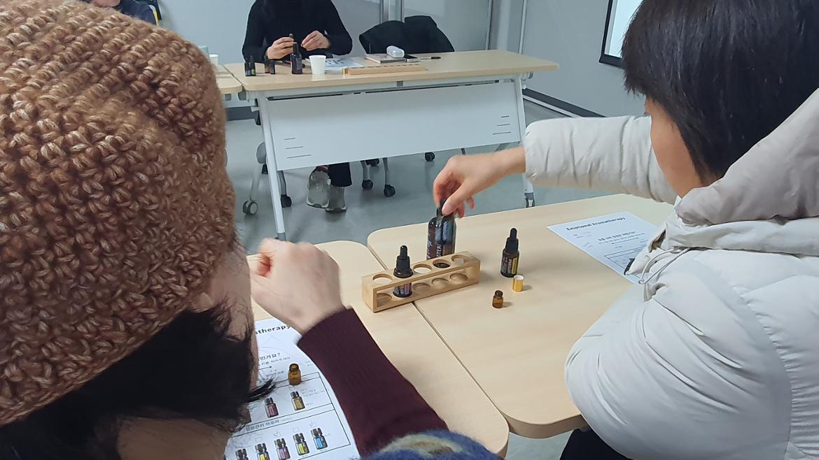 프로그램이 진행되는 동안 강의실에는 상쾌한 허브 향과 따뜻한 천연 오일 향이 은은하게 퍼져