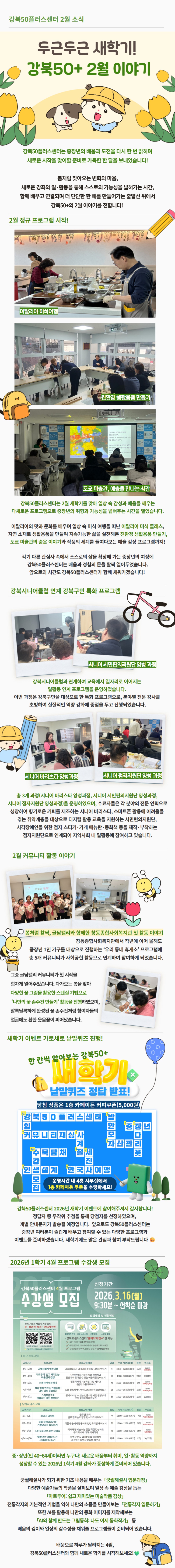 서울시 강북센터 | 두근두근 새학기! 강북50+ 2월 이야기