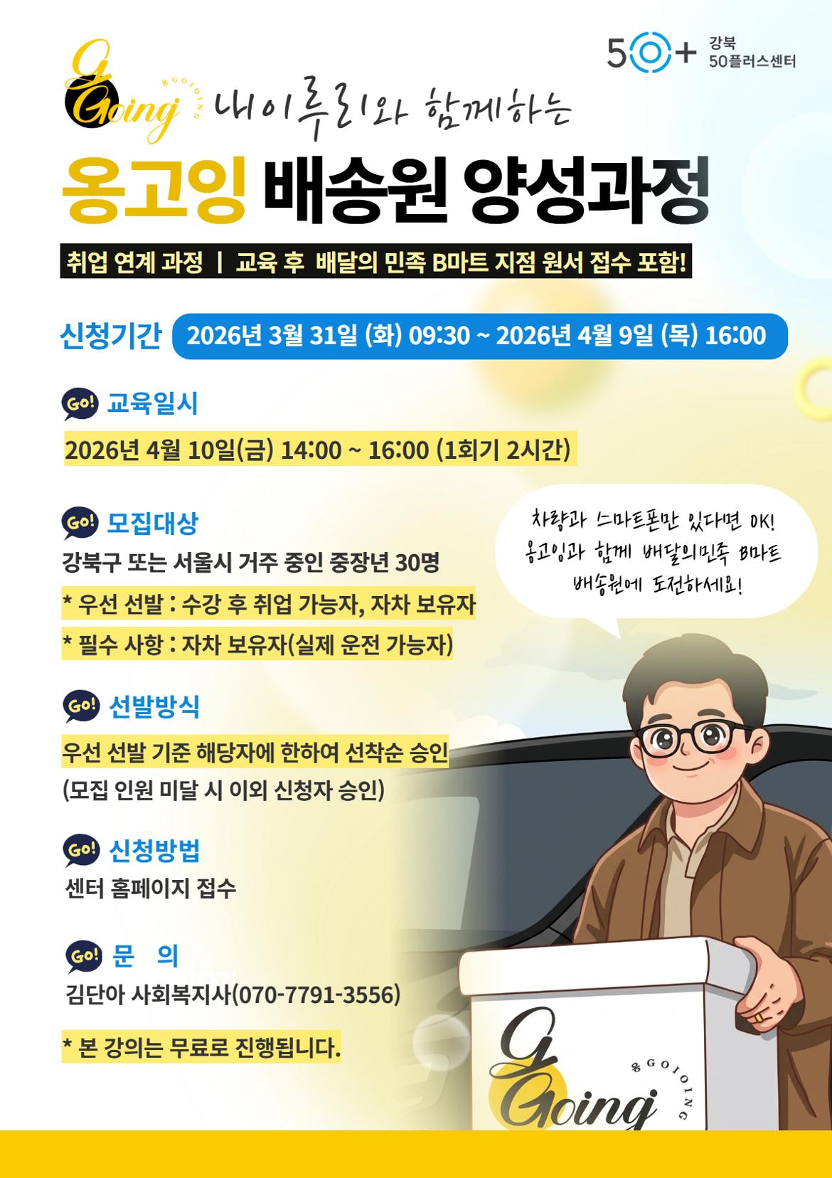 강북50플러스센터 내이루리 배송 배송원 양성교육 옹고잉 일자리연계