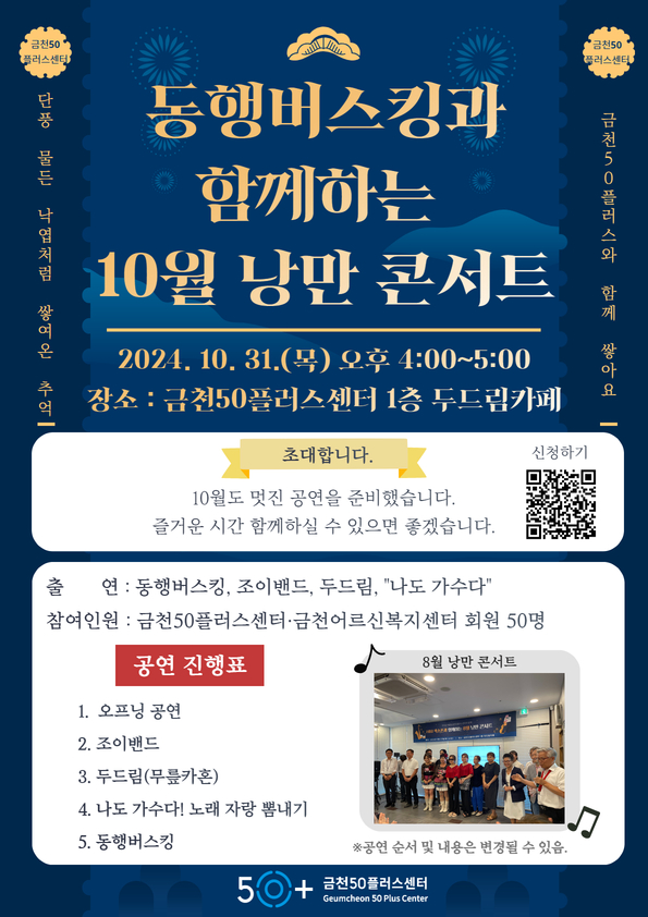 가수공연 가을 금천50플러스센터 무료 공연 커뮤니티 콘서트