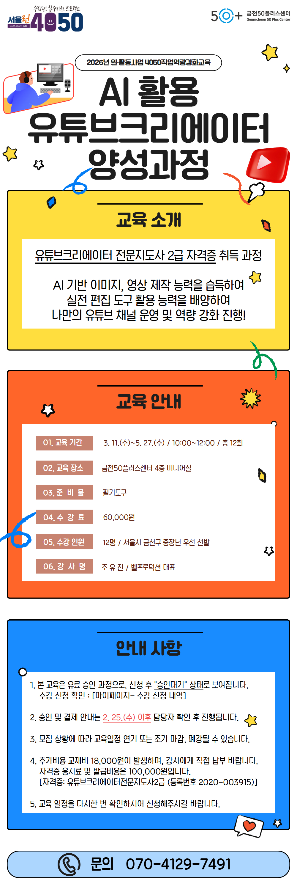 AI 교육프로그램 금천50플러스센터 유튜브 일활동사업