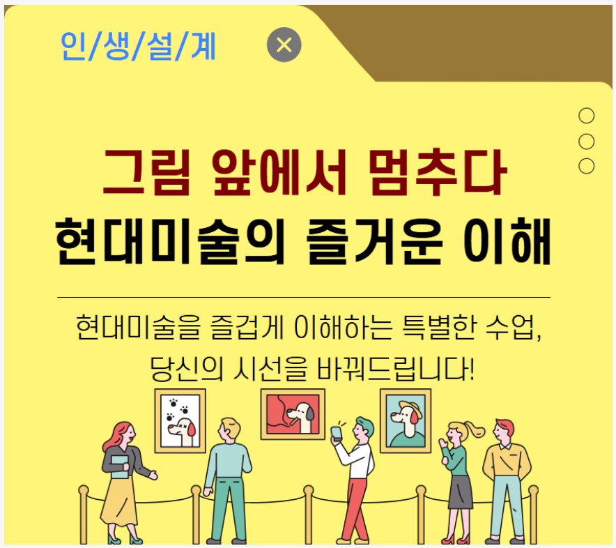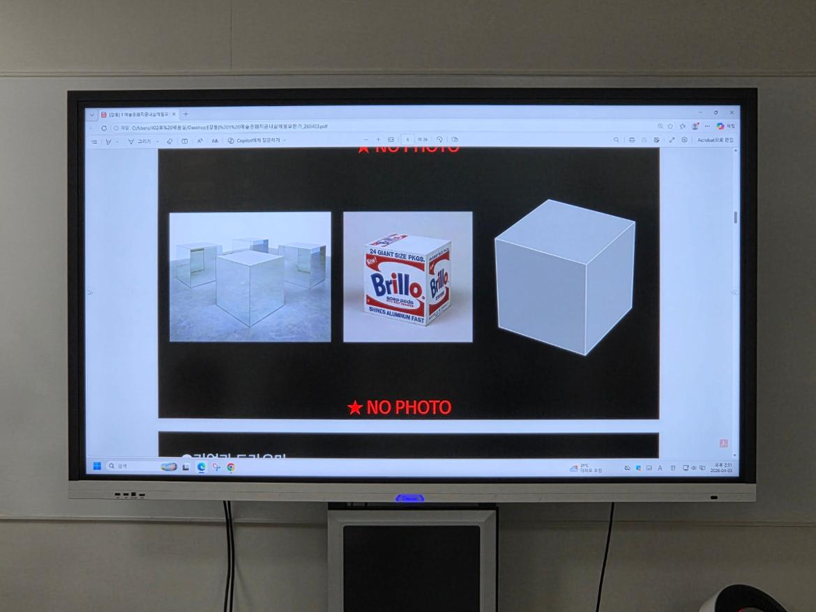전반적으로 현대미술을 보다 넓은 시각에서 바라볼 수 있게 해준 의미 있는 강의였습니다.