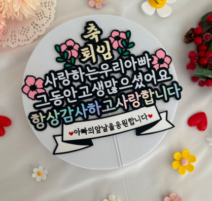 토퍼란 케이크나 다양한 소품 위에 꽂는 장식 문구나 캐릭터 등을 의미합니다.
