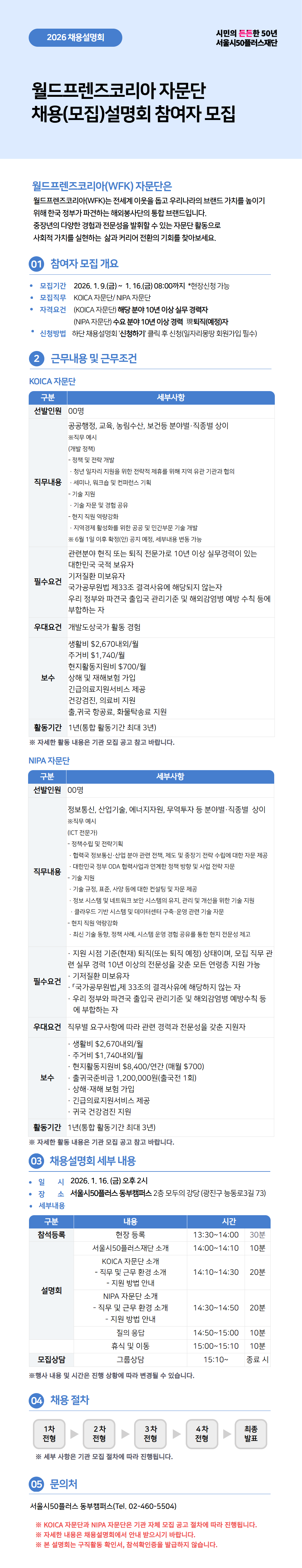 2026년 「월드프렌즈코리아 자문단」채용(모집)설명회 참여자 모집마감 D-3