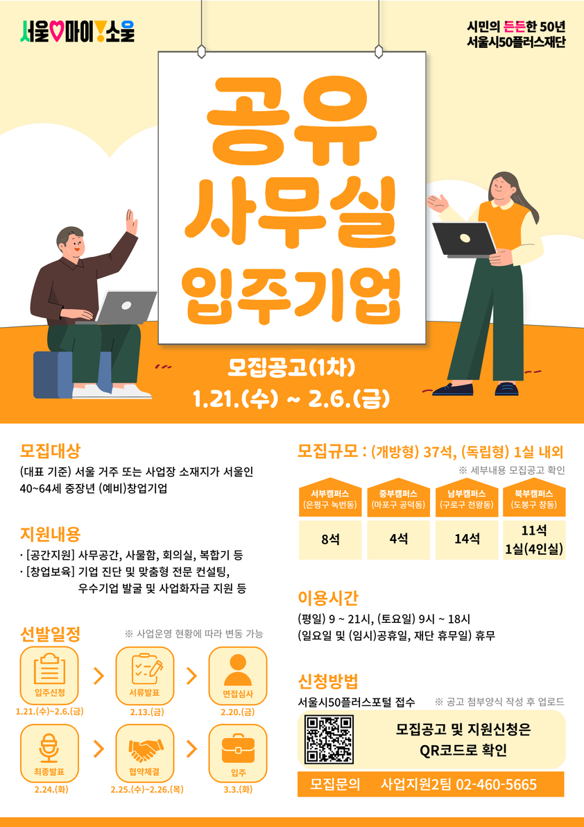 서울시50플러스재단 공유사무실 입주기업을 모집합니다.