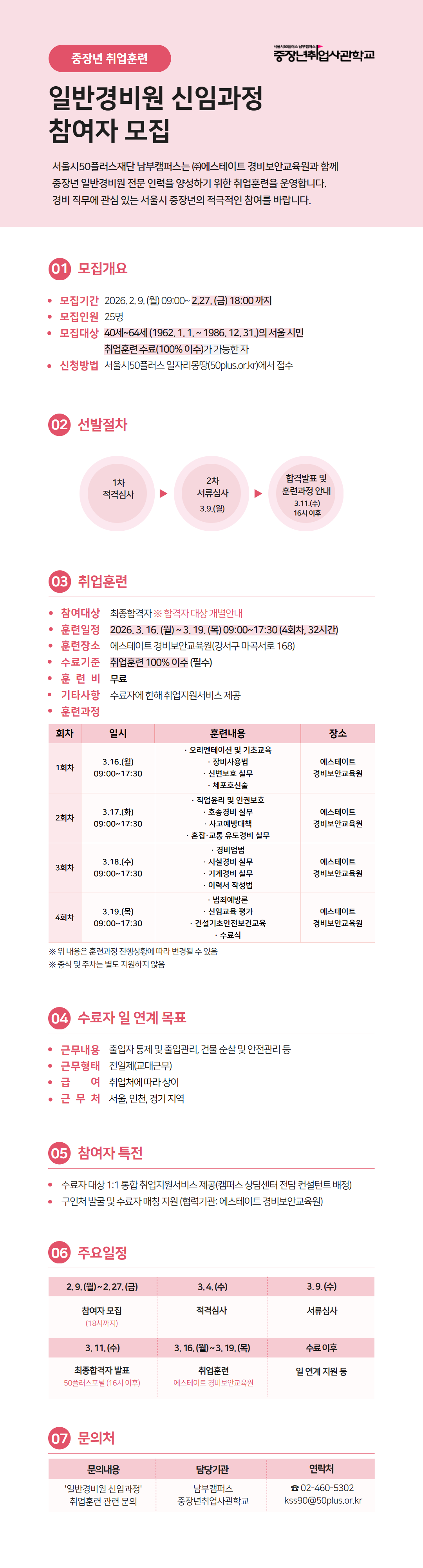취업훈련 「일반경비원 신임과정」 참여자 모집마감 D-17