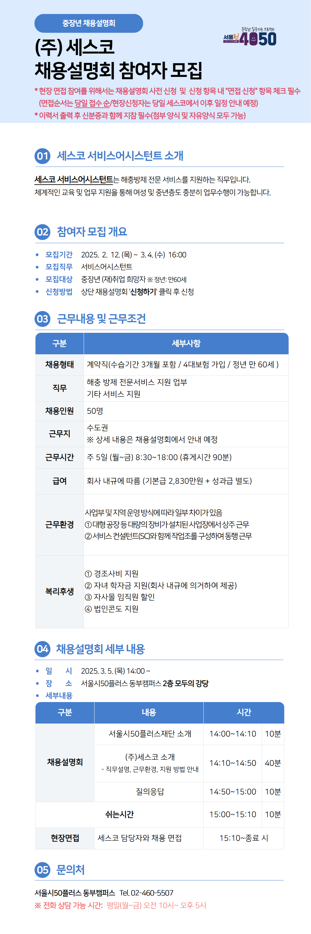 2026년 중장년 채용설명회 [(주)세스코] 서비스어시스턴트 채용설명회 참여자 모집마감 D-15
