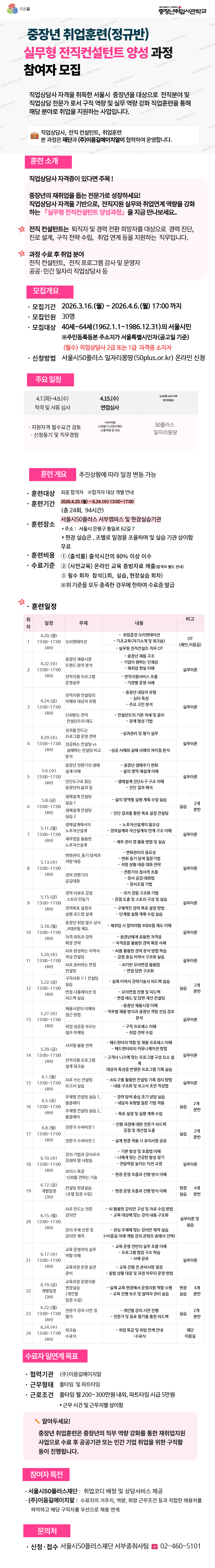 중장년 구직자들이 빠르게 변화하는 산업전환 및 직업환경에 대응할 수 있도록