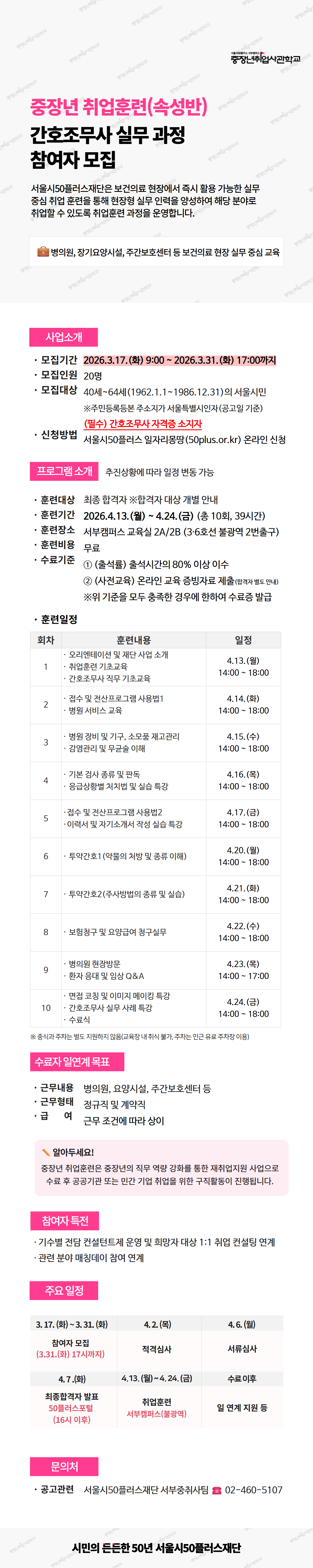속성반 「간호조무사 실무 과정」참여자 모집 공고 마감 D-1