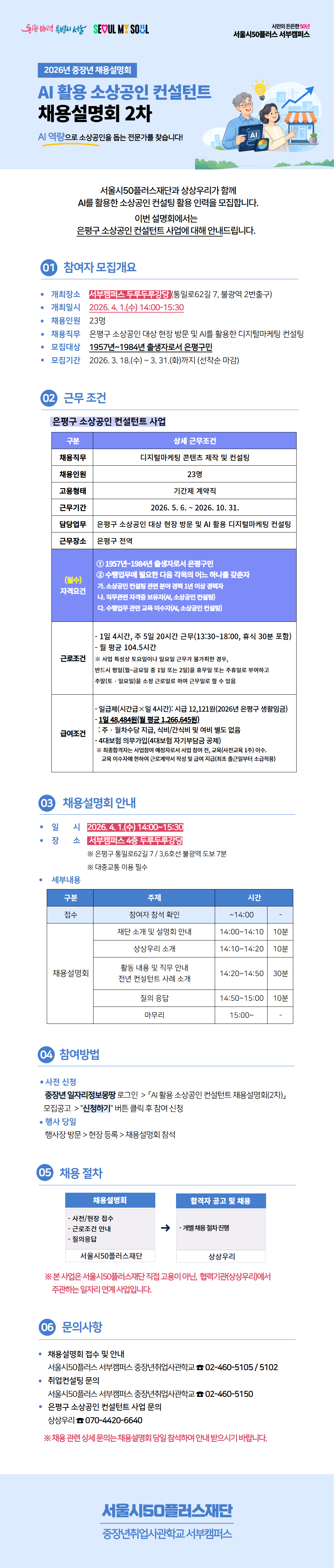 [은평구민] 2026년 「AI 활용 소상공인 컨설턴트」 채용설명회(2차) 참여자 모집마감 D-1