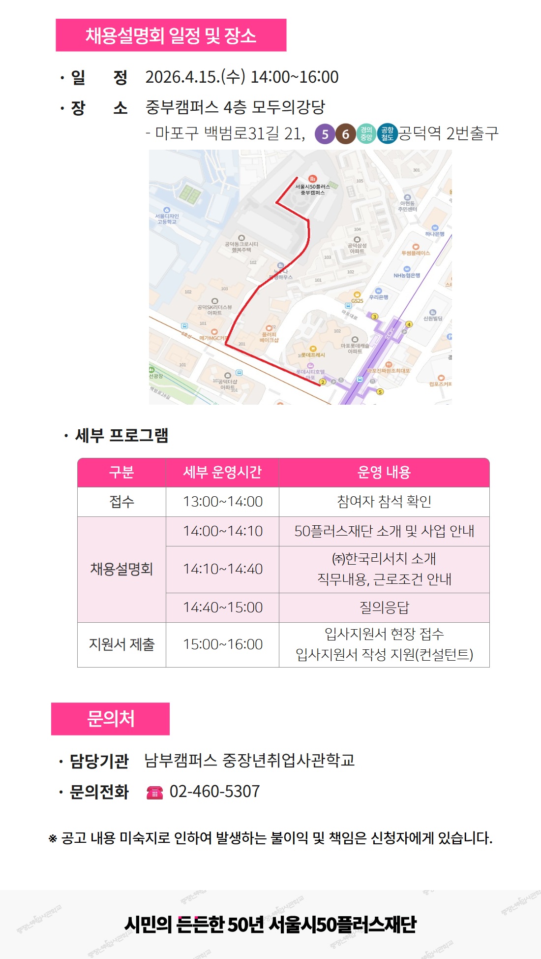 장소 중부캠퍼스 4층 모두의강당(마포구 백범로31길 21 서울복지타운 / 공덕역 2번 출구)