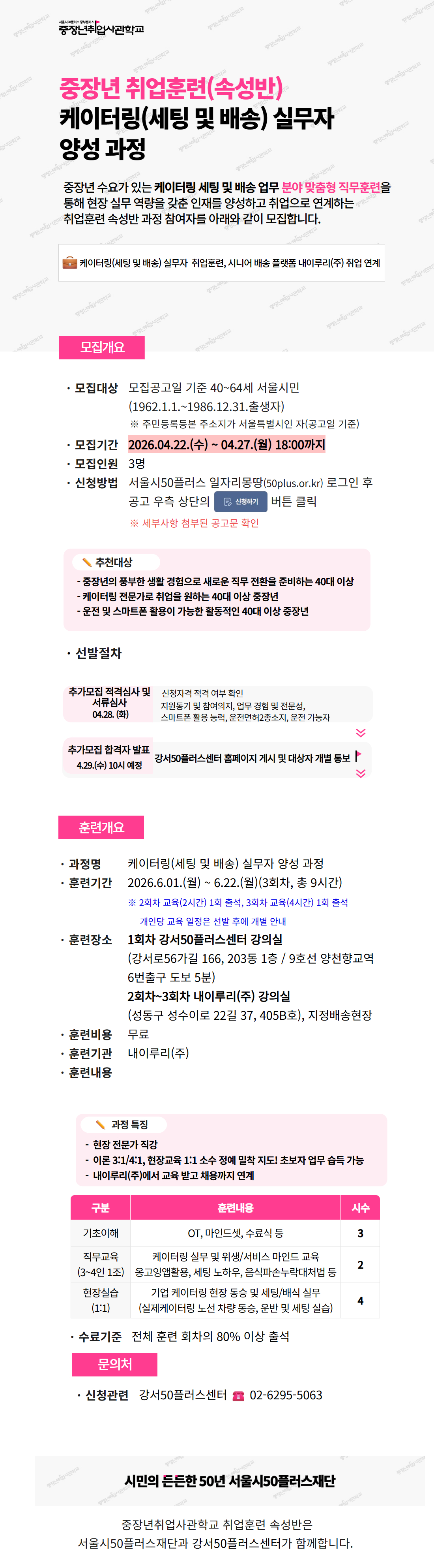 속성반 「케이터링(세팅및배송)실무자 양성 과정」 참여자 추가모집 공고마감 D-1
