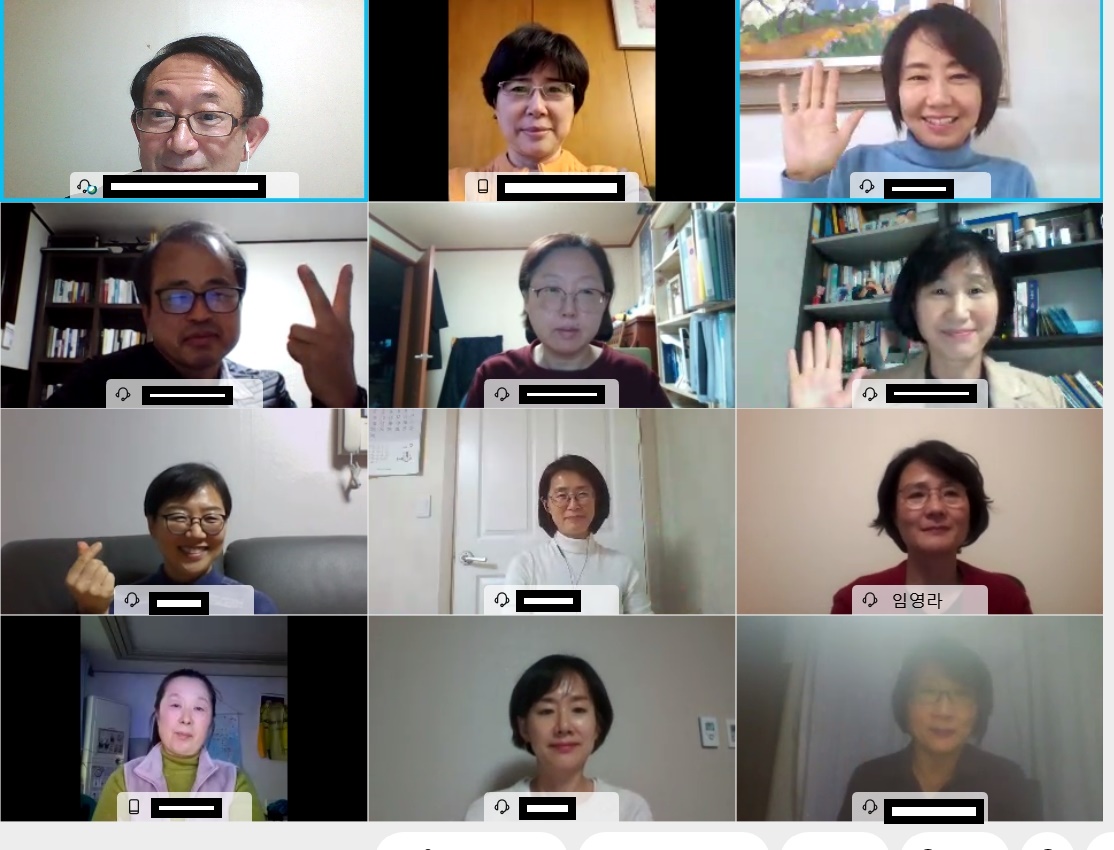 웃지 못할 사건들도 많이 벌어졌다. 오디오가 안되서 채팅으로만 소통하기도 하고. 와이파이 환경 때문에 미팅방에서 튕겨져 나가 다시 들어오지도 못하고 낭인처럼 헤매기도 하고. 메뉴가 온통 영어로 바뀌어 당황하고. 하울링이 심해 다른 기기의 오디오환경을 바꿔보고 등등. 밤늦게까지 미팅 방에서 와글와글 떠들면서 “온라인이라 더 피곤해!”를 외쳤지만 사실은 더 재미있었다. 아무도 모르는 새로운 세계에 첫발을 디뎠다는 희열과 성취감 때문이었다고 생각한다. 변화하는 시대에 적응하고자 하는 선생님들의 열정과 노력이 빛나는 시간이었다. 문제가 생기면 질문하고 함께 풀어나가기 위해 노력하는 모습을 보며 서로 고무되는 경험을 했다.